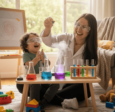 Cada experimento, receta y juego incluye una breve "Explicación Mágica" basada en hitos del desarrollo: